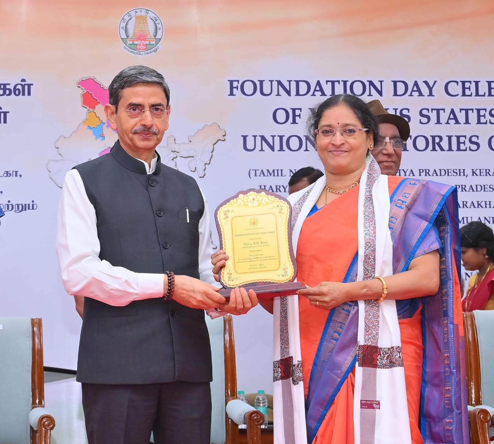 | Mrs.Lakshmi Mohan receiving "Kalai Maa Mani" Award from Chief Minister of Tamil Nadu 2018 |