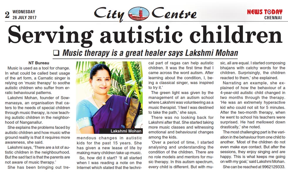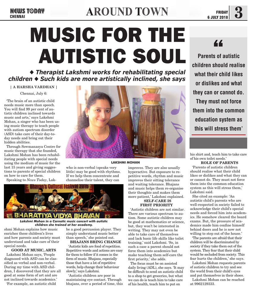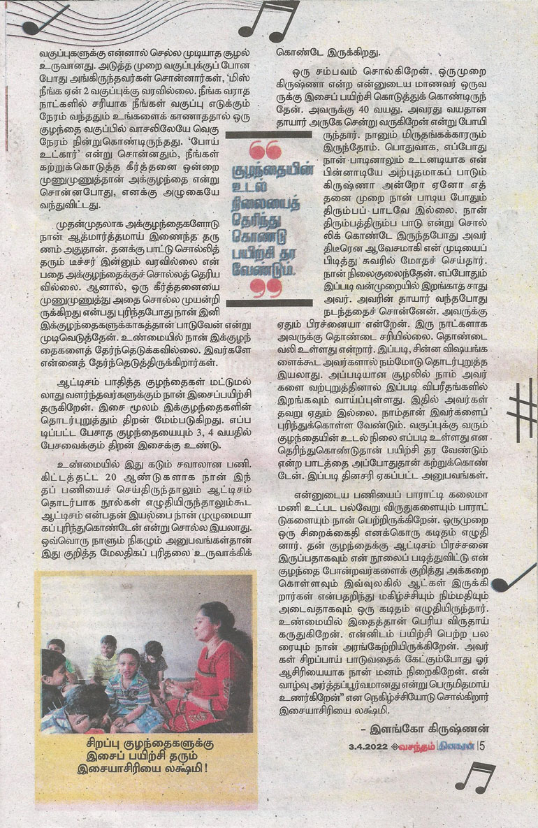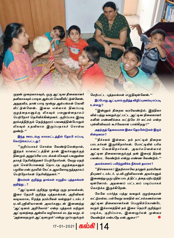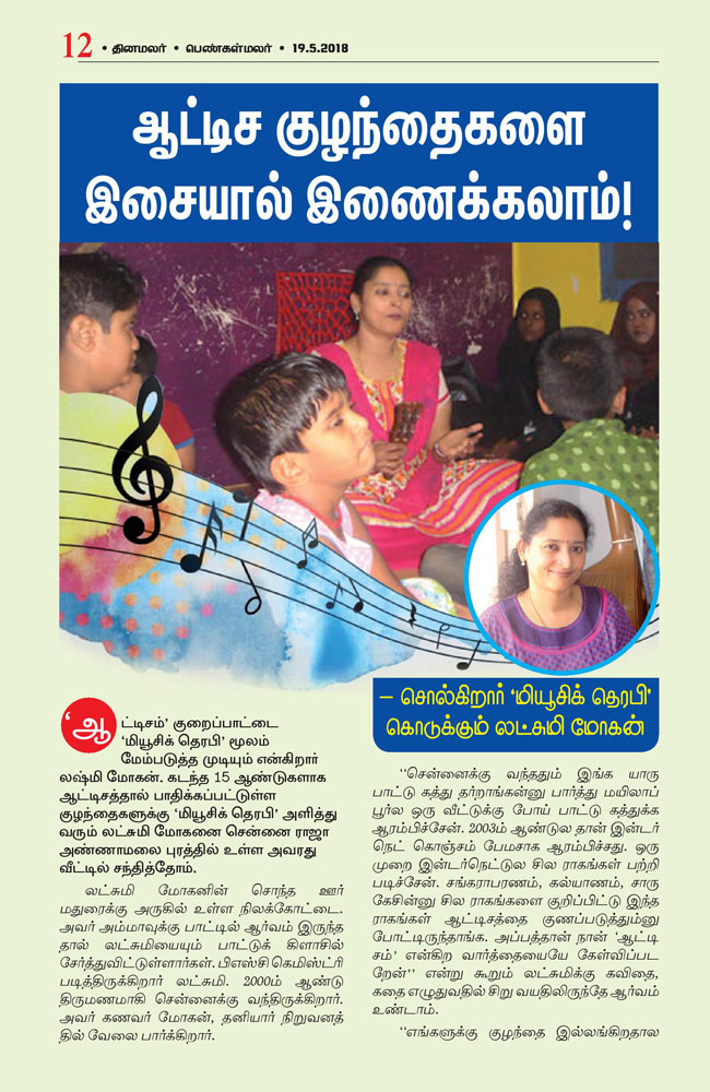 | ஆட்டிசத்துக்கு மியூசிக் தெரபி சிகிச்சை...! இசைக்கலைஞர் லஷ்மி மோகனின் முயற்சி |