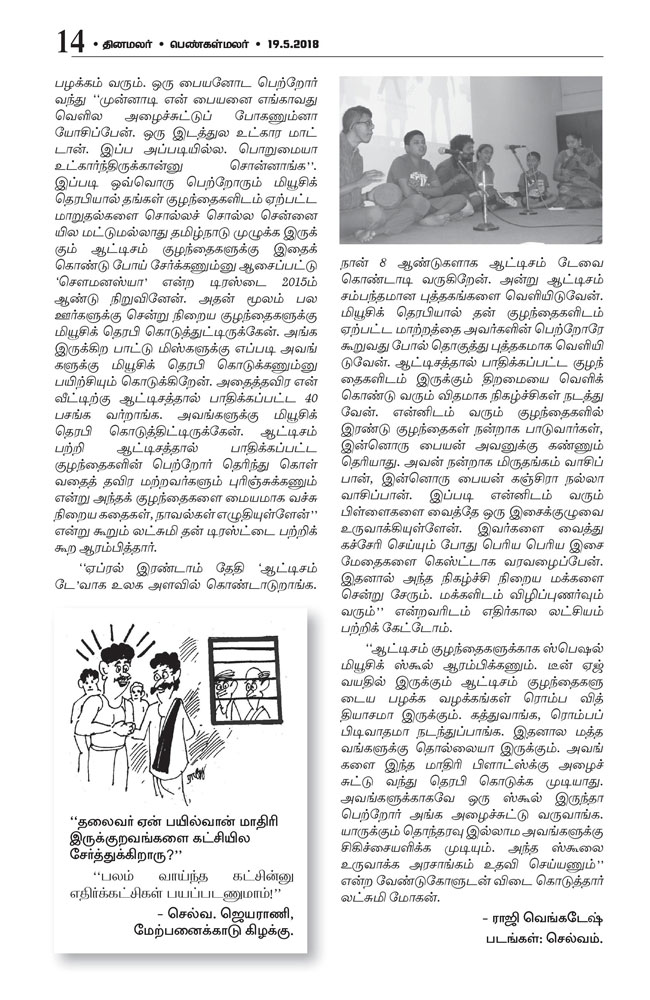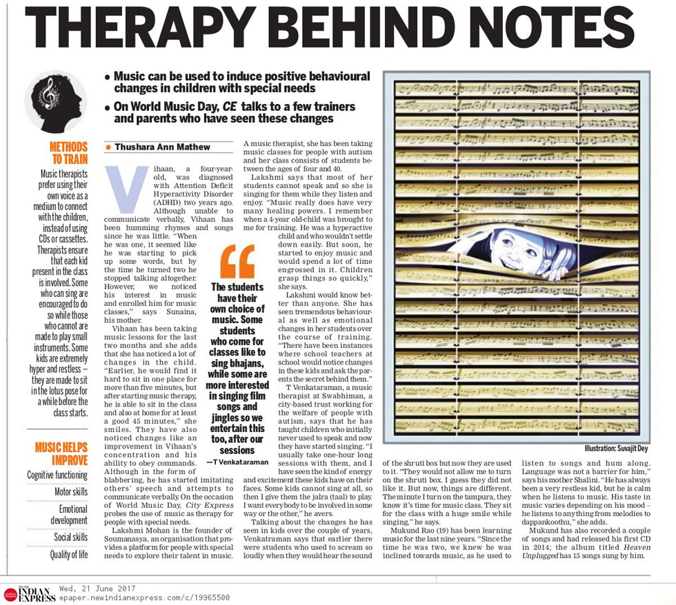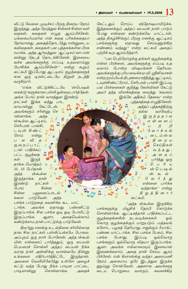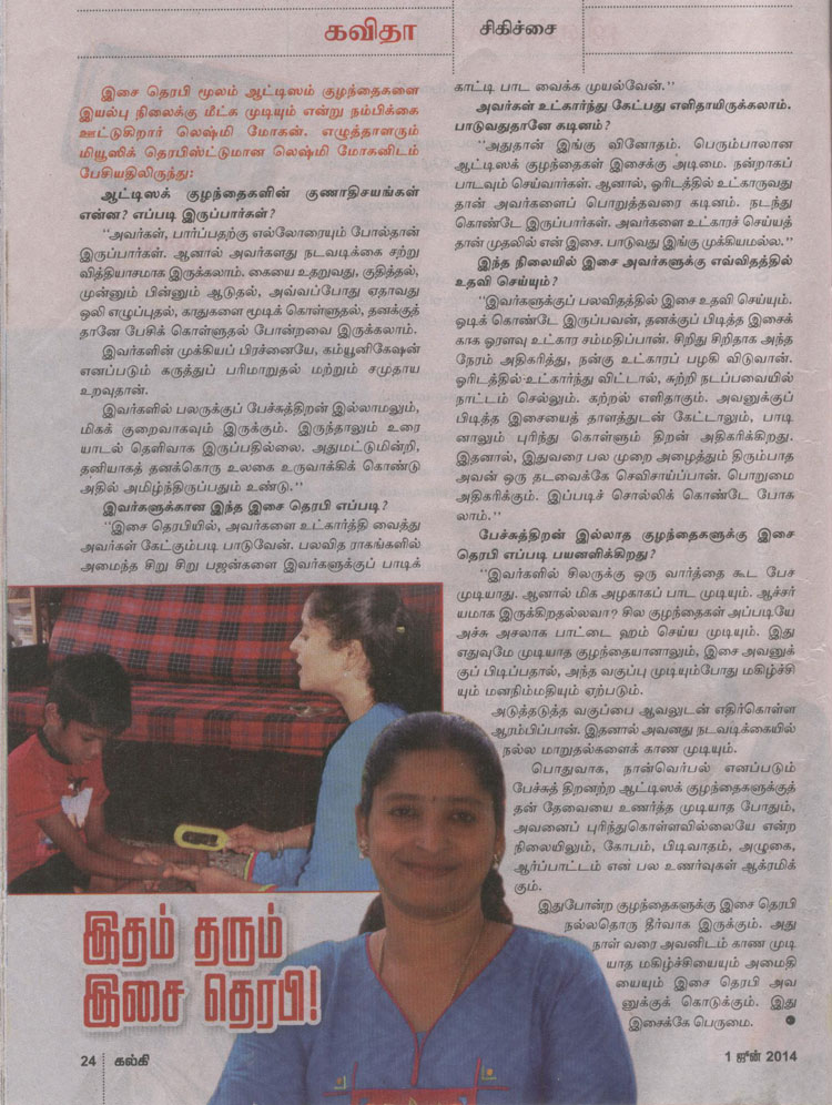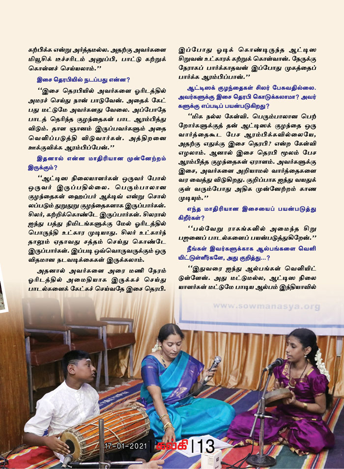 | ஆட்டிசத்துக்கு மியூசிக் தெரபி சிகிச்சை...! இசைக்கலைஞர் லஷ்மி மோகனின் முயற்சி |