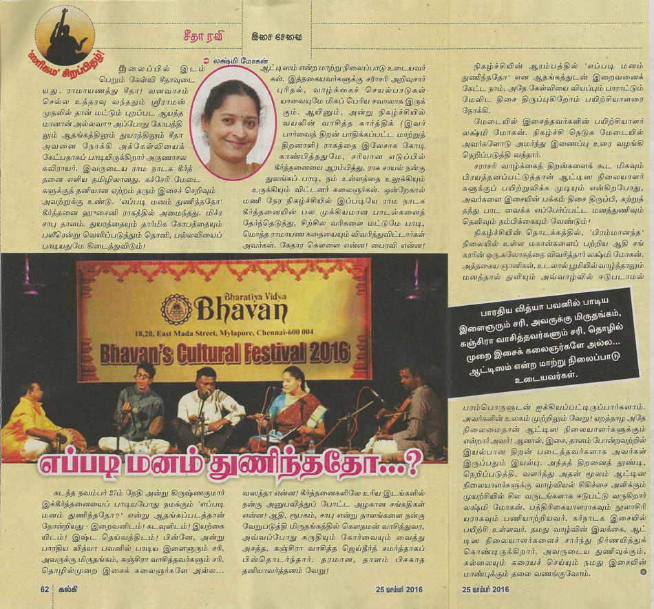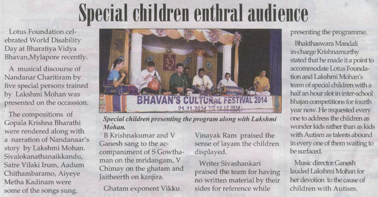 | Concert by our students at Margazhi Music season at Bharthiya Vidhya Bhavan |