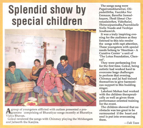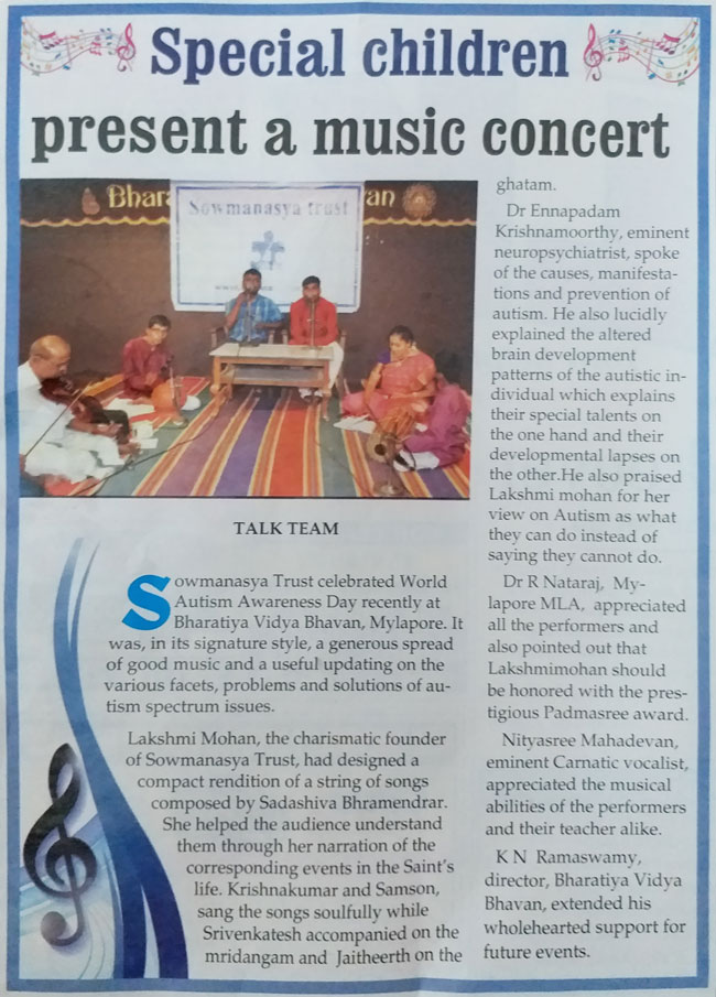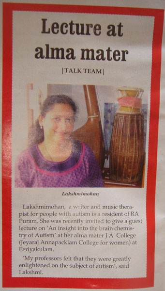 | At MOP Vaishnava college, Chennai, in an autism campaign I was invited as a guest. My students performed and I gave a talk on "Autistic Savant". It was a memorable moment. |