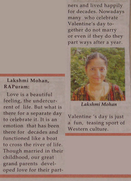 | My view on Valentine's Day for Mylapore Talk |