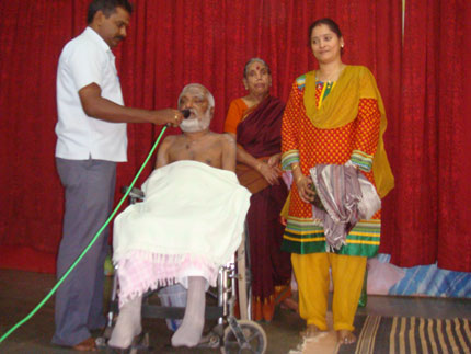 | Getting Blessings from Swami Bhrammananda. |