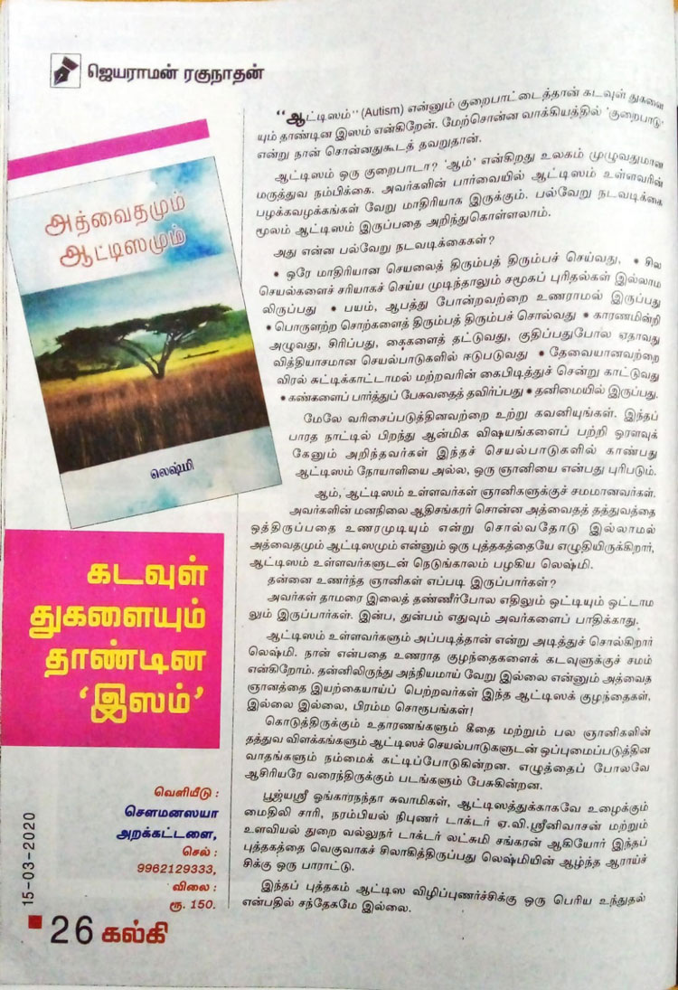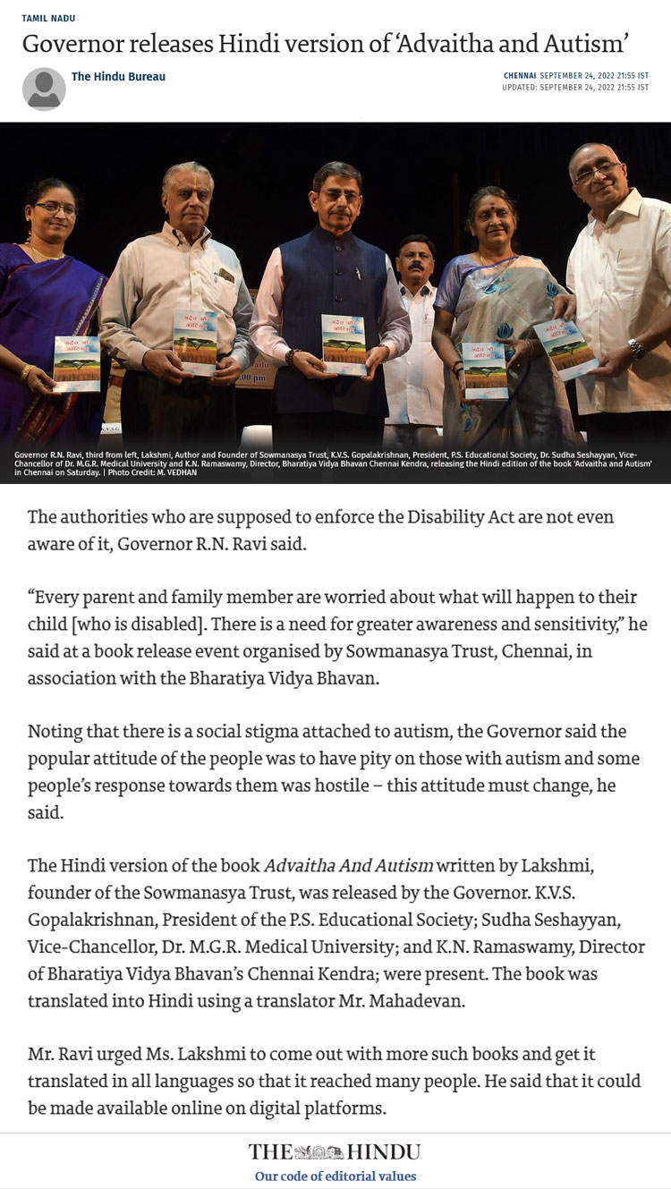 | Lakshmi's "Advaitha & Autism" Book Introduction | ||